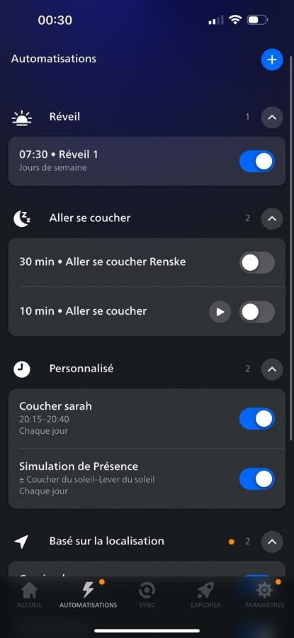 Pour la partie sommeil, l’approche est sérieuse. L’application permet de planifier avec précision les horaires de coucher et de lever, tout en ajustant l’intensité lumineuse et les nuances de couleurs. De quoi créer un environnement propice à un endormissement progressif ou à un réveil tout en douceur. Deux mois de test auront permis d’en vérifier l’impact — que nous détaillerons un peu plus loin — sur la qualité du sommeil.