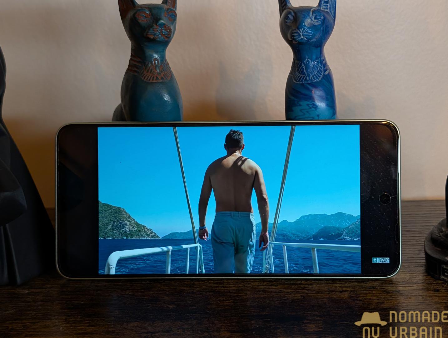 Niveau luminosité, l’écran est en retrait. Par conséquent, ce comportement déçoit pour le visionnage de vidéos compatibles. Malgré tout, la lisibilité quotidienne reste de bonne facture en intérieur. Toutefois, une forte exposition au soleil révèle immédiatement les limites du panneau. En effet, les reflets prennent le dessus par manque de véritable punch lumineux.