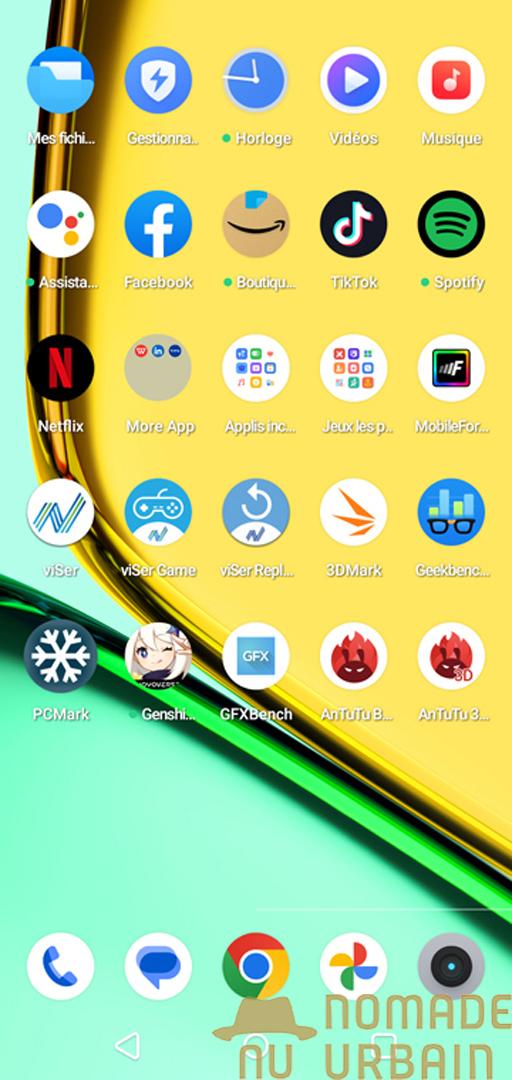 Le dos en plastique imite habilement l’aspect de l’aluminium. Ainsi, le rendu visuel se révèle particulièrement plaisant. Le fabricant propose deux coloris distincts : noir et Sunny Oasis. Pour notre part, nous avons testé cette déclinaison vert irisé qui joue magnifiquement avec la lumière.