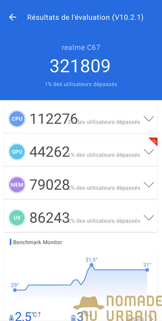 Ce test a été réalisé avec un produit testé par Realme.