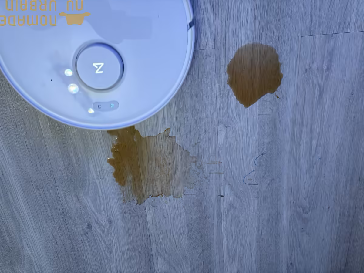 Nos tests de taches le confirment. Le robot est venu à bout sans difficulté des taches de feutre et a bien éliminé les taches liquides fraîches, comme le café. Le cas du cola a été plus complexe : après deux passages, le sucre n’était pas totalement éliminé, laissant le sol collant. Il a fallu un second cycle complet de deux passages pour enfin retirer cet effet.