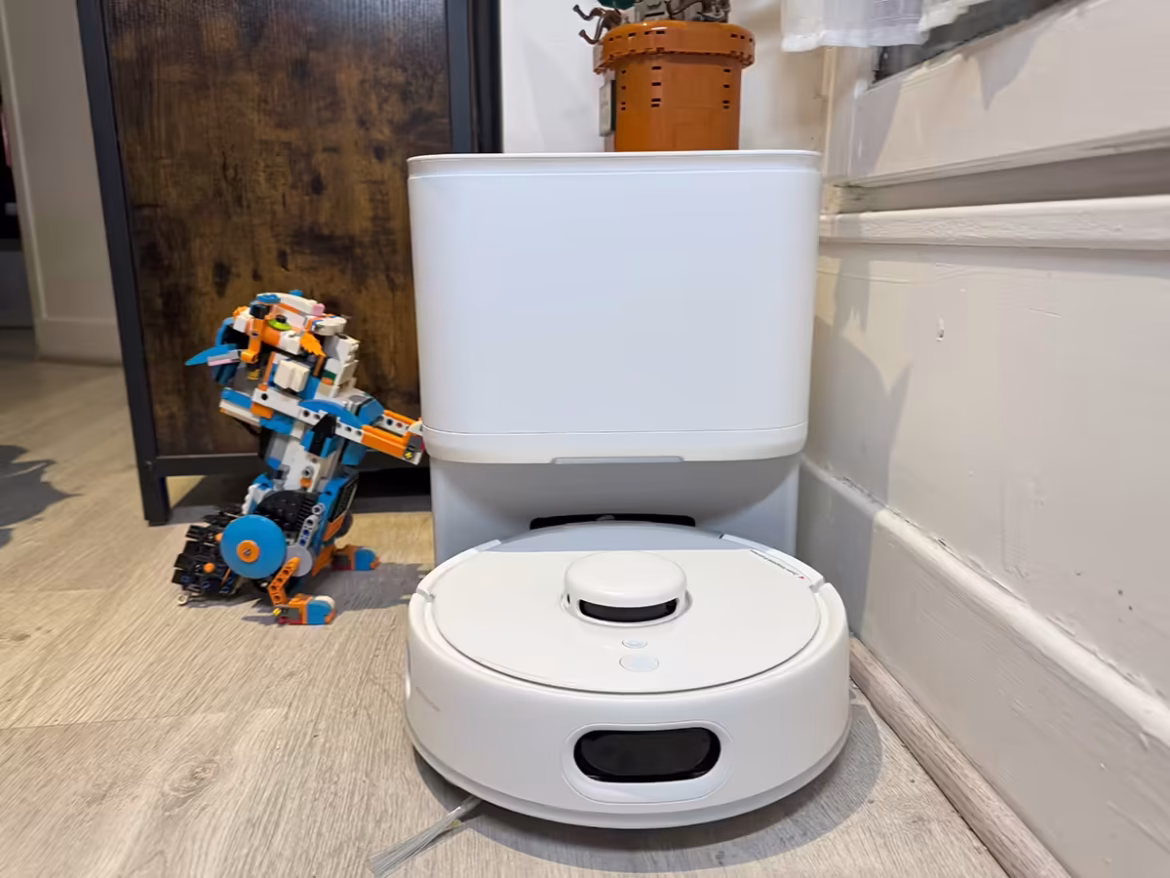 Le SwitchBot K10+ Pro conserve la même base d’autovidange que son prédécesseur. Ce n’est pas un défaut. Bien au contraire. Avec seulement 26,1 cm de large, 21 cm de profondeur et 32,3 cm de hauteur, elle fait partie des plus petites du marché. Elle s’impose comme une solution idéale pour les intérieurs modernes où l’espace est compté.