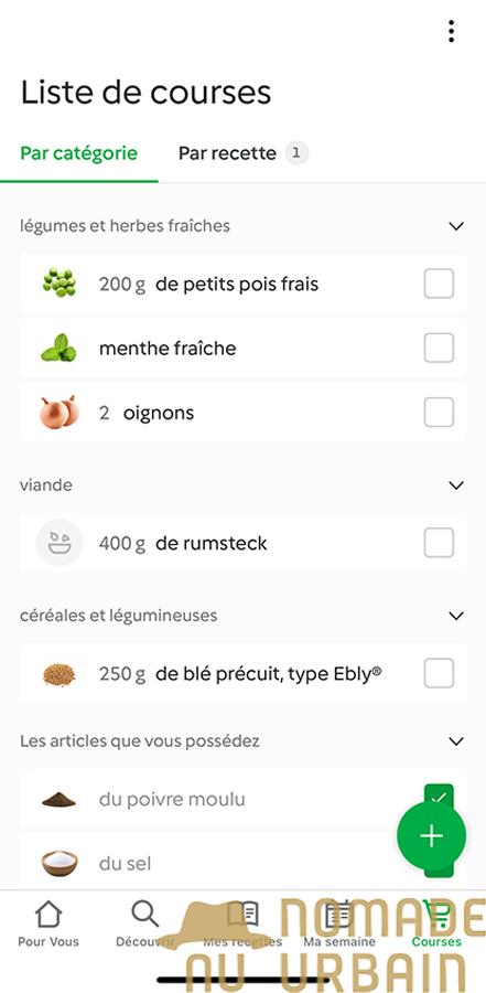 L’application me génère ensuite la liste de courses complète que je peux ensuite partager par messagerie avec la personne qui vit sous le même toit. Oui, celle qui comme la compagne du testeur oublie invariablement quelque chose avec une liste papier. Cet exercice de planification permet aussi de mesurer concrètement ma capacité à limiter le gaspillage alimentaire.