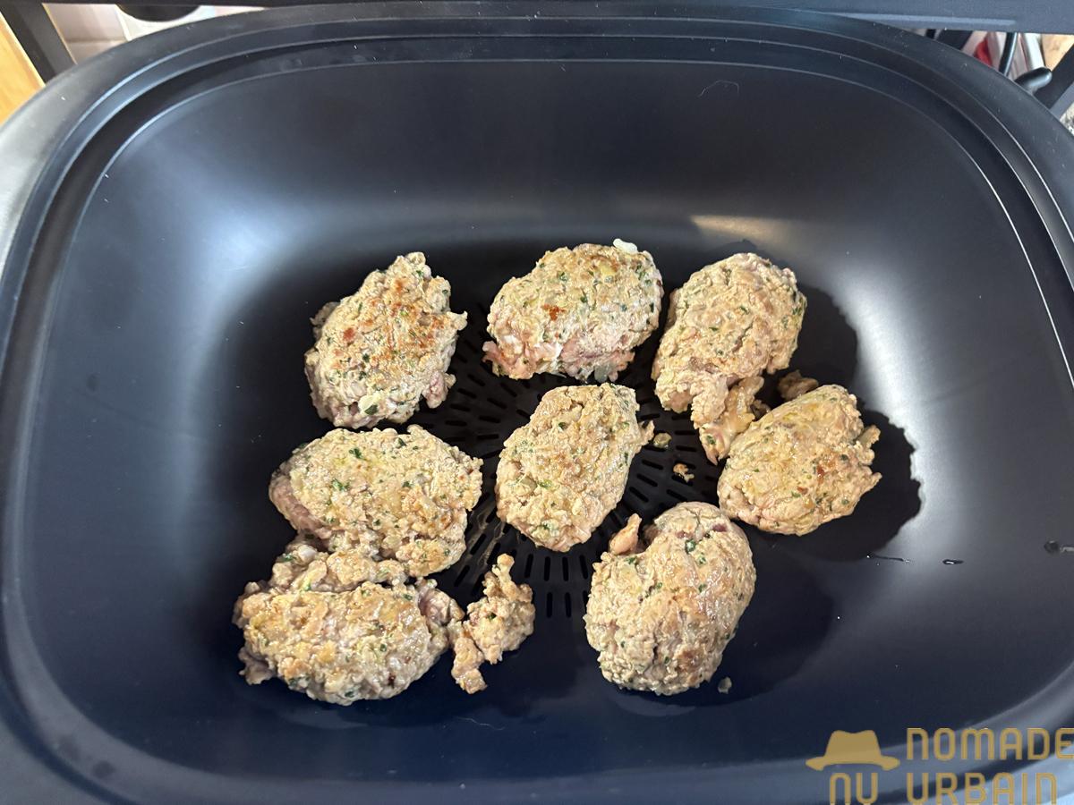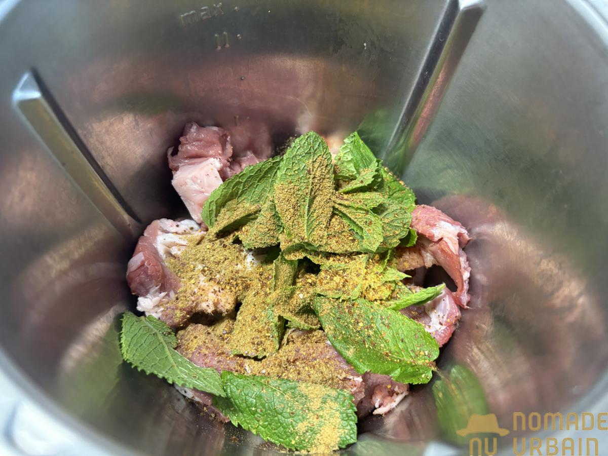 Dans tous ces cas, la puissance du moteur de 500 watts, et capable d’atteindre 10 700 tours par minute, se fait sentir positivement. Comme pour la préparation de keftas, avec des morceaux de viandes, associés )à des herbes et des épices. Après quelques minutes, je n’ai plus qu’à réaliser mes boulettes.