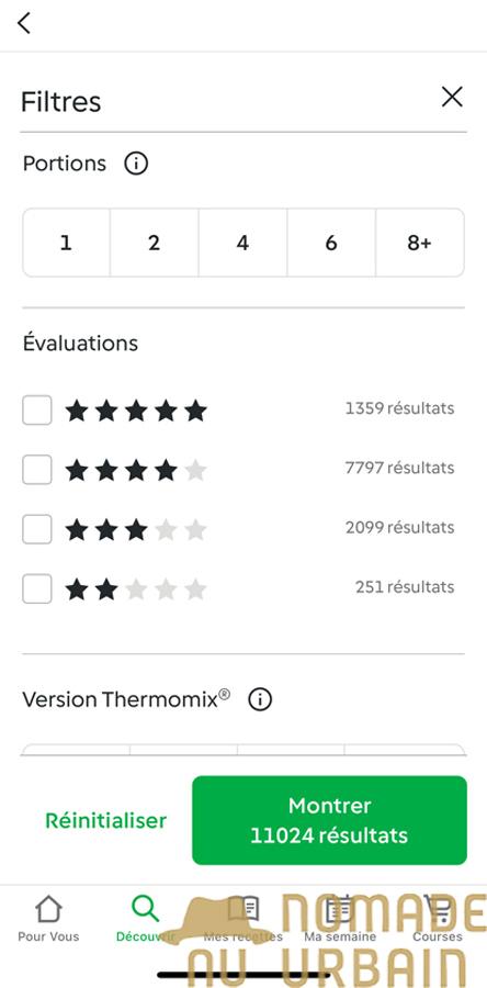 Il y’a même moyen de choisir une recette par niveau de difficulté, adapter automatiquement les quantités en fonction du nombre de convives ou par accessoire à utiliser.