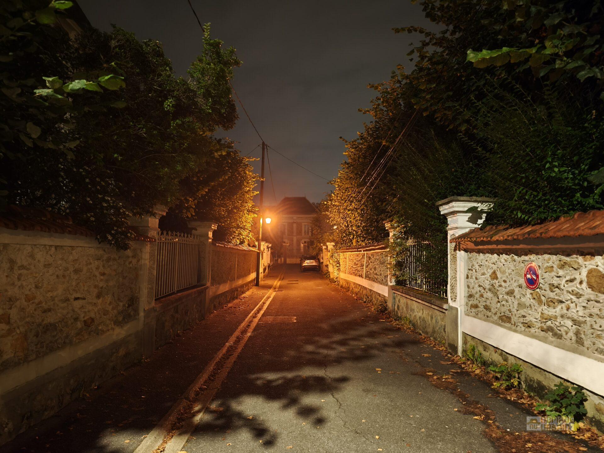 Le capteur ultra grand-angle, performant en plein jour, se montre clairement en difficulté la nuit. La luminosité manque cruellement, tout comme les nuances de contraste. Le résultat est honorable, mais loin d’être excellent. Le principal coupable est, encore une fois, le lissage trop important, qui affecte négativement la qualité des images.