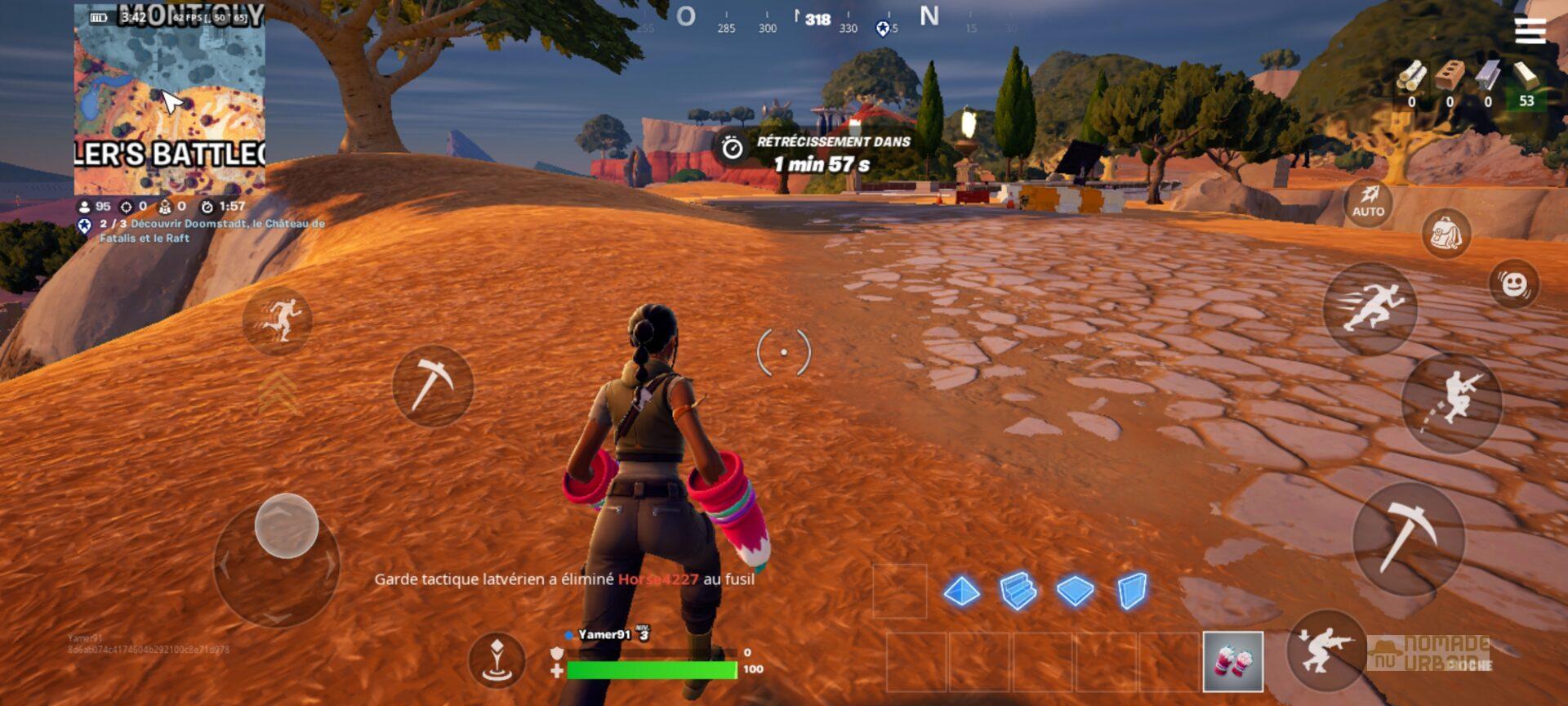 Du côté du gaming, Fortnite en mode Épique, avec tous les réglages graphiques poussés au maximum, tourne à un framerate stable de 60 fps.