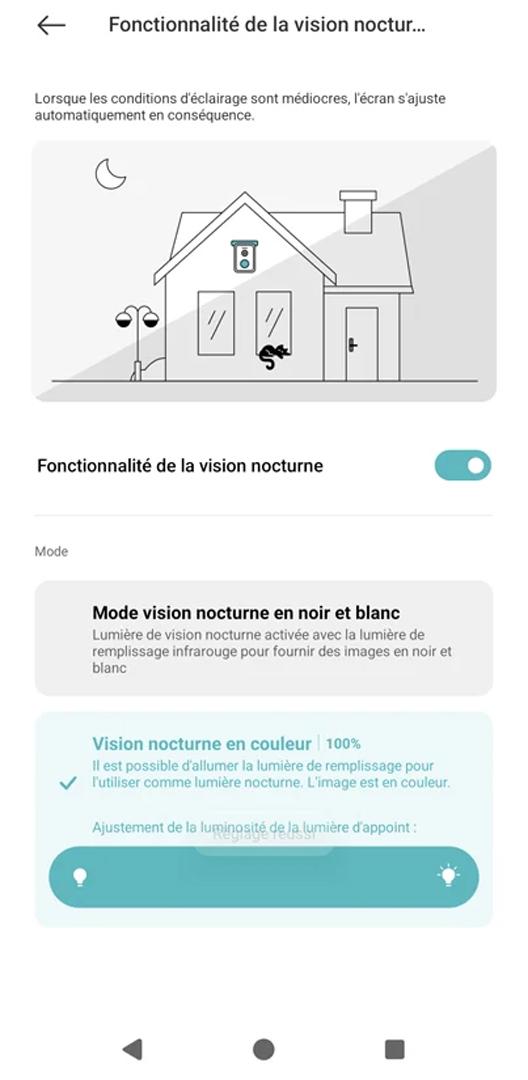 Une fois le soleil couché, deux options s’offrent à vous. La vision infrarouge (noir et blanc) assure le service minimum mais souffre d’un déficit de précision. À l’inverse, la vision nocturne en couleur transforme l’expérience grâce à une netteté bien supérieure.