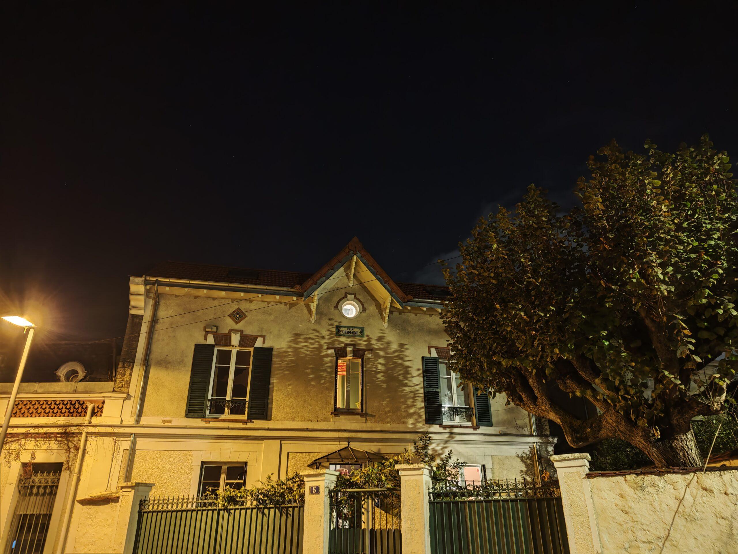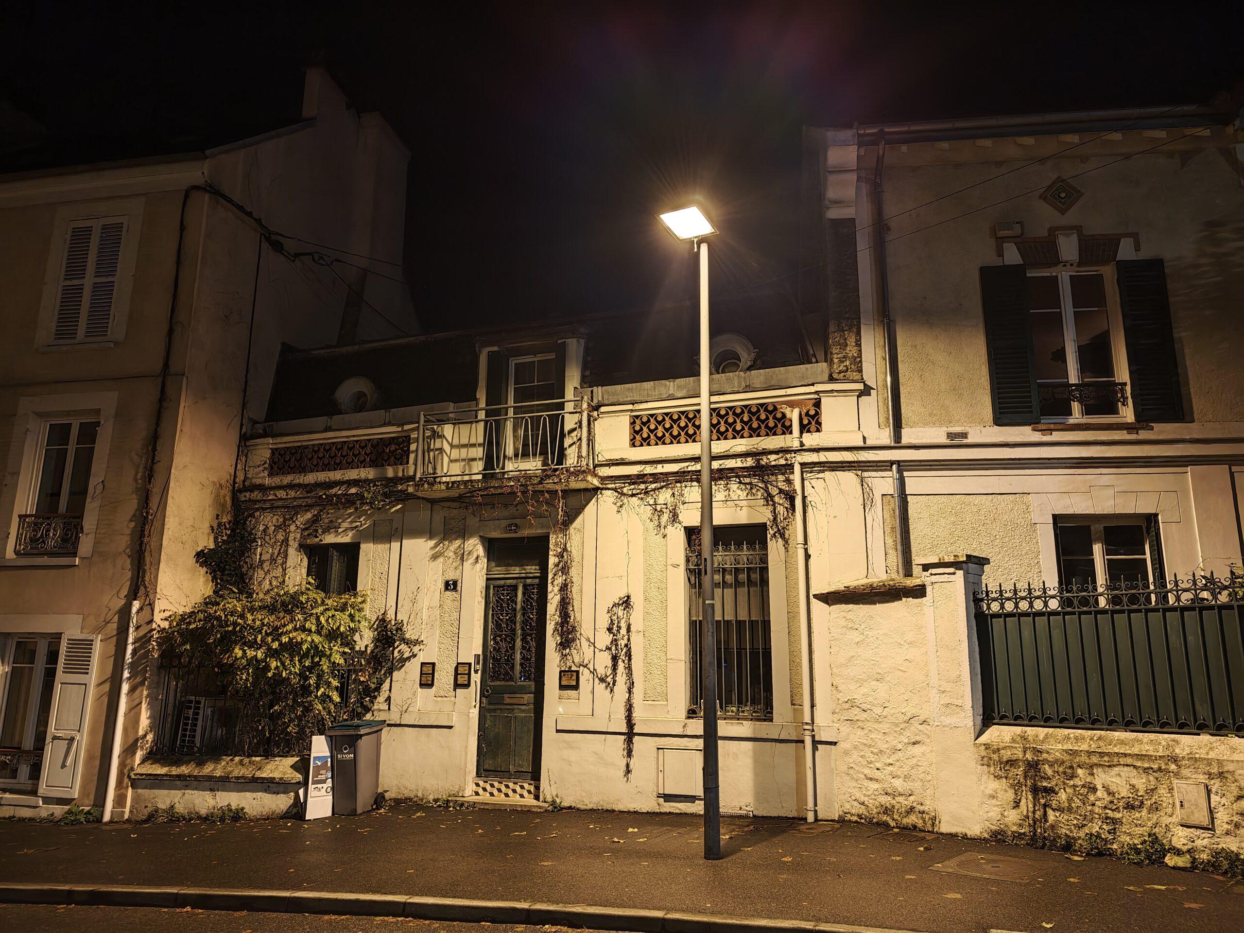 En conditions nocturnes, le zoom numérique x2 assure l’essentiel. Si l’on perçoit une légère baisse de piqué sur les éléments fins (comme des fleurs) et un lissage accru des arrière-plans, le résultat reste exploitable. La colorimétrie calque celle du module principal : un rendu peu réaliste et flatteur, conçu avant tout pour garantir la lisibilité de la scène.
