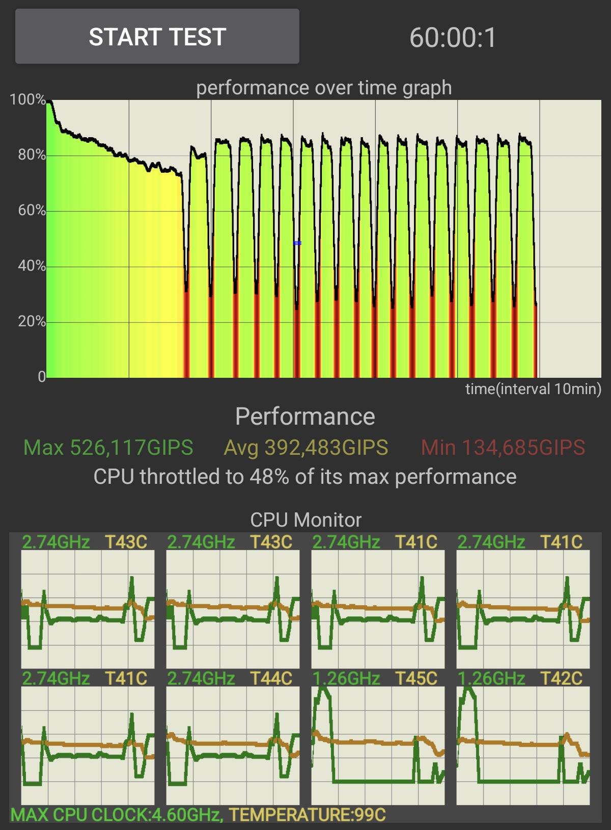 Pour refaire le plein, le smartphone est compatible avec la charge rapide jusqu’à 100 W via le protocole Power Delivery. Selon le constructeur, cela permet de passer de 0 à 100 % en moins de 40 minutes. Pour nos mesures, nous avons utilisé un chargeur tiers de 66 W. Ce qui nous donne en vitesse de charge :