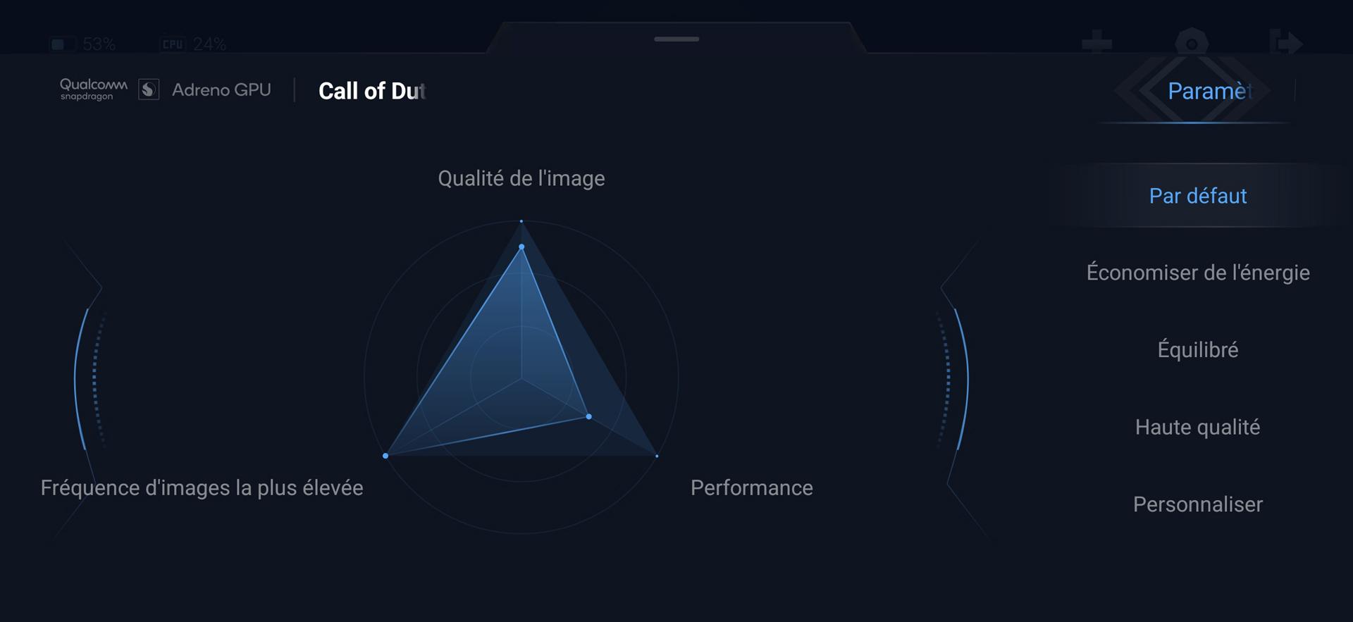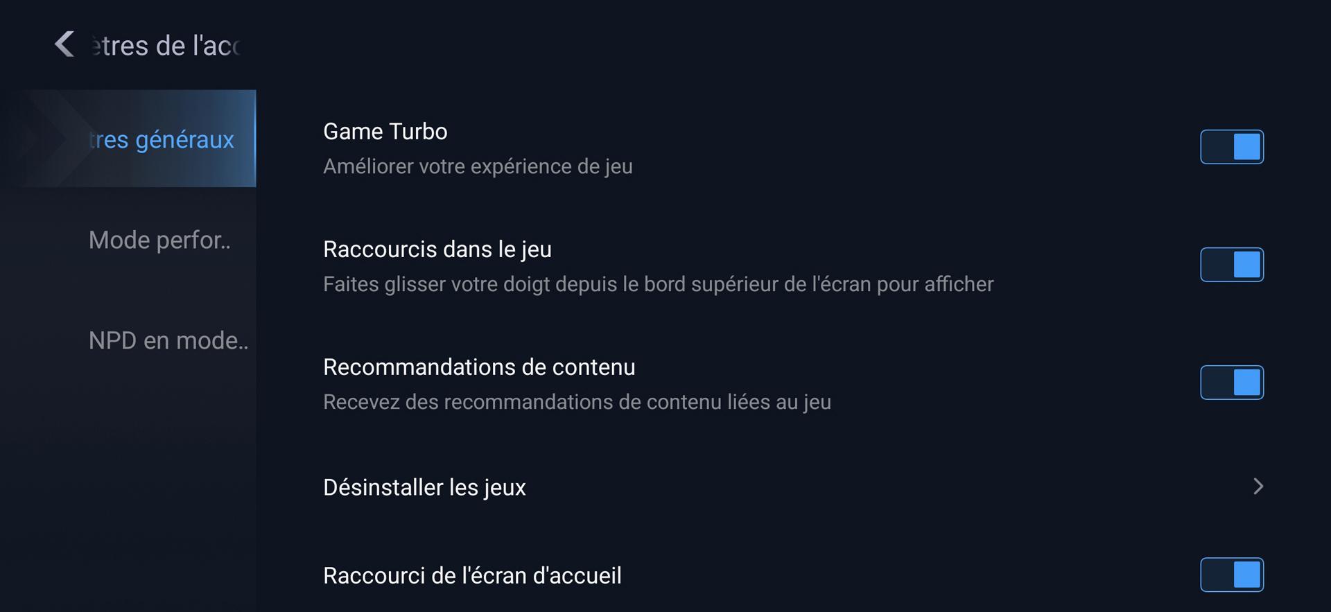 L’ADN joueur du smartphone s’exprime via une surcouche dédiée qui s’active, automatiquement ou manuellement, au lancement d’un jeu. Ce tableau de bord permet de piloter les options liées à l’IA, comme la « super résolution », le HDR ou la gestion du taux de rafraîchissement.