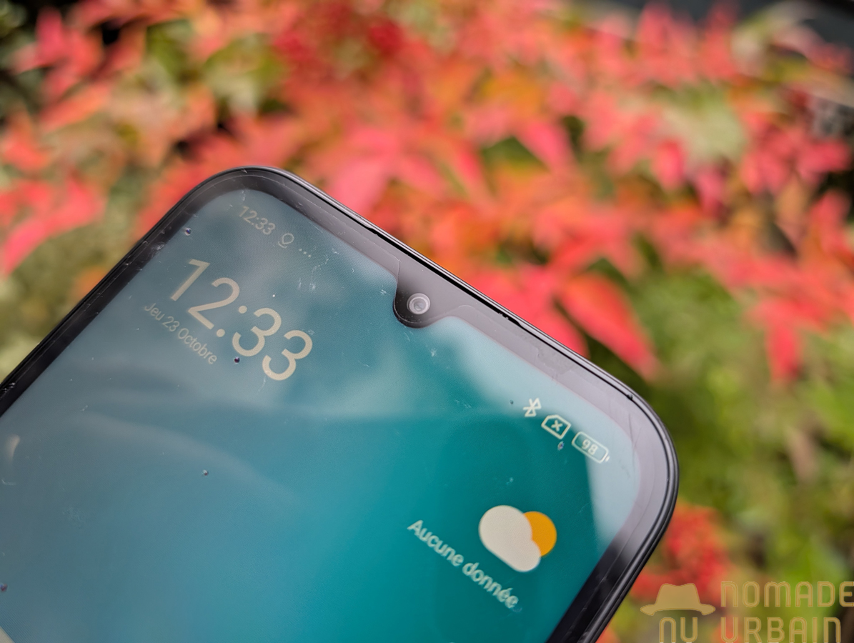 En façade, l’affichage occupe 84 % de la surface, la faute à des bordures bien visibles et à la présence d’une encoche en goutte d’eau, là où le Redmi 15 propose un poinçon central plus discret.
