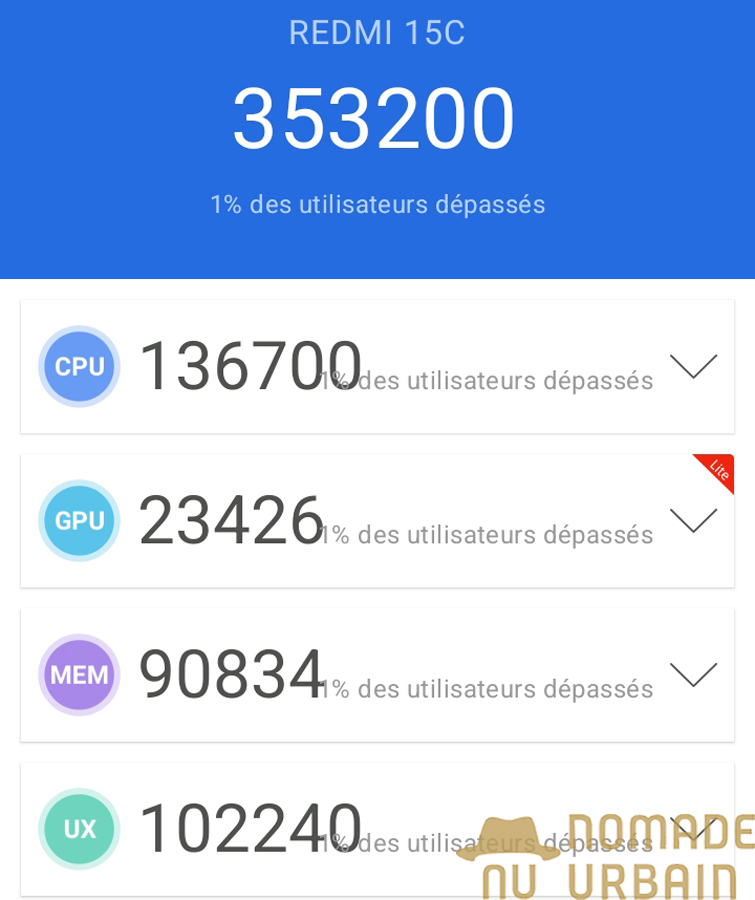 Le choix de Xiaomi est donc clair : plutôt que la puissance brute, la marque a privilégié une exploitation optimale et maîtrisée d’une puce modeste. Le Dimensity 6300 n’est pas un foudre de guerre, mais ses performances restent stables et constantes.
