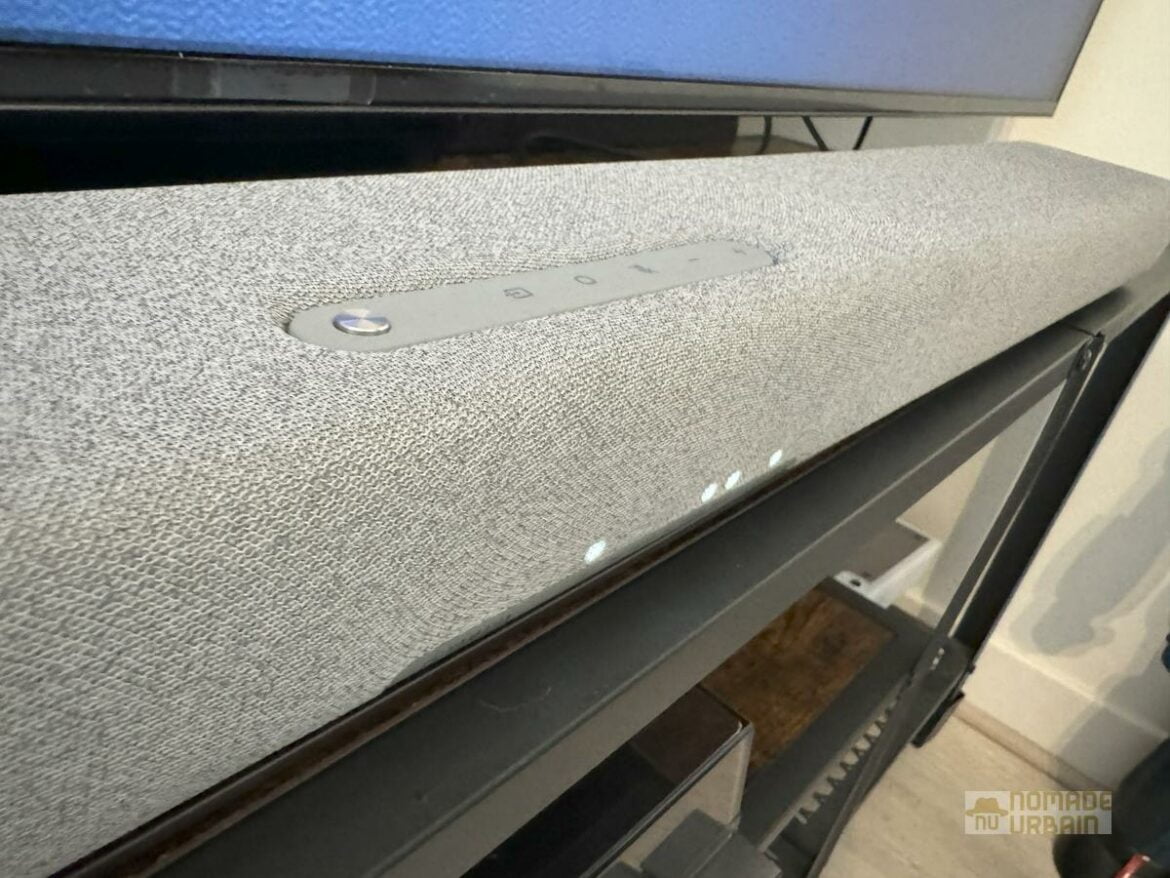 Sur le devant de l’appareil, l’absence d’un écran d’affichage classique est compensée par la présence de LED fournissant des indications de manière subtile. Ces témoins lumineux varient pour indiquer diverses informations, allant du niveau de volume à la source audio en cours d’utilisation.