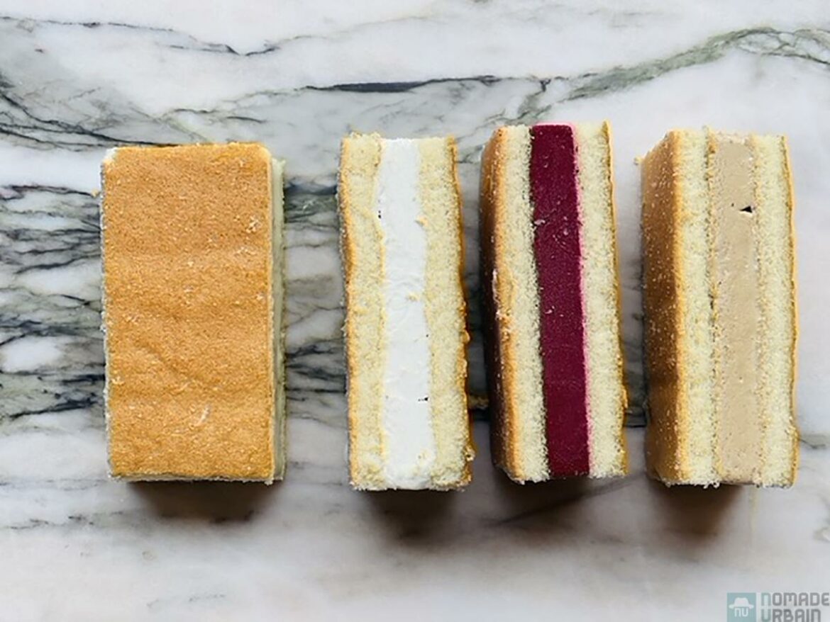 Ils prennent la forme de deux tranches d’une légère génoise rectangulaire (8 cm sur 4 cm), renfermant des crèmes glacées (pistache, fleur de lait, café) ou un sorbet (cassis). La parfaite fusion de la pâtisserie et de la glace, pour une gourmandise des plus rafraîchissante. Comptez 4,50 euros la pièce et 7,50 euros pour deux, à découvrir dans la boutique du 27 rue Saint-Placide 75006 Paris.