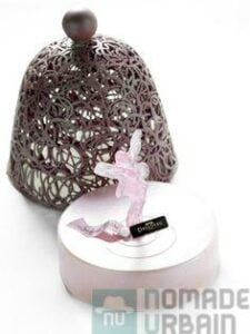 J’ai une petite fille, ce qui m’a peut-être influencé dans ce choix. Un entremet aux saveurs noisette, chocolat noir et praline rose sert de scène à une petite fée scintillante, qui se dissimule sous un dôme de dentelle chocolat au lait.