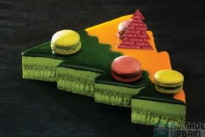 Ce superbe sapin est signé Sadaharu Aoki, un japonais qui s’amuse à réunir saveurs occidentales et japonaises dans sa pâtisserie Parisienne ! Il affiche des parfums yuzu et thé vert matcha dans un entremet aux saveurs subtiles et dont le design est à la fois moderne et un respect des traditions de noël.