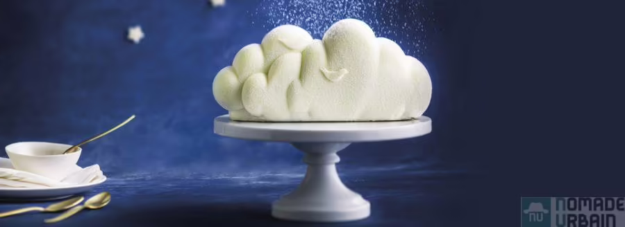 Un nuage aérien, délicat dont les rondeurs aériennes gourmandes : une onctueuse crème glacée à la noisette, une douce meringue et à sa crème glacée vanille enrobée de pralin.
