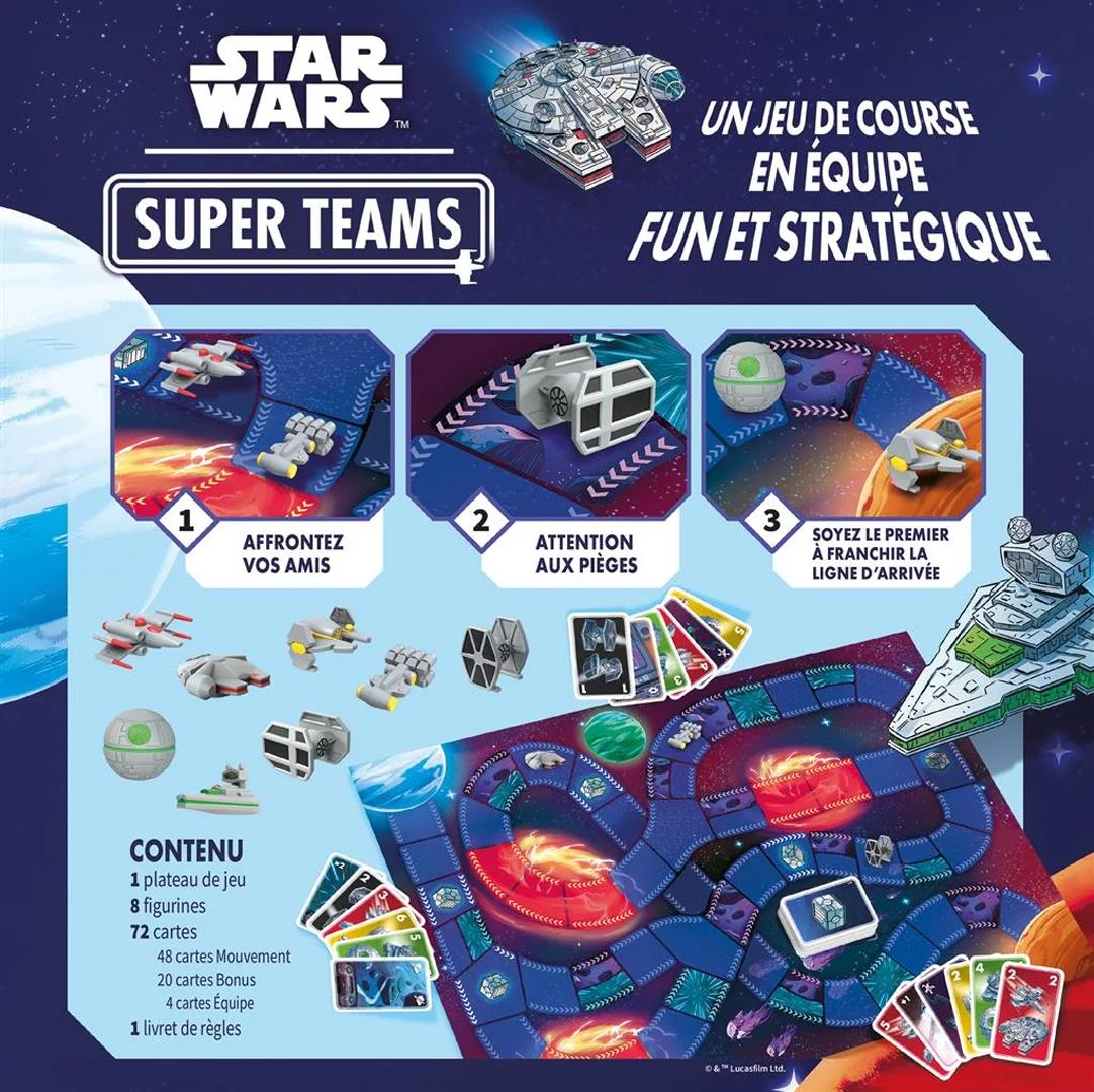Loin des jeux de stratégie complexes nécessitant des heures d’apprentissage, Star Wars Super Teams propose une approche conviviale et dynamique de l’univers de George Lucas. Il s’agit d’un course tactique sur un plateau. Chaque participant prend les commandes de deux vaisseaux emblématiques de la franchise, qu’il s’agisse du Faucon Millenium, d’un X-Wing, d’un Destroyer Stellaire ou même de l’Étoile de la Mort.