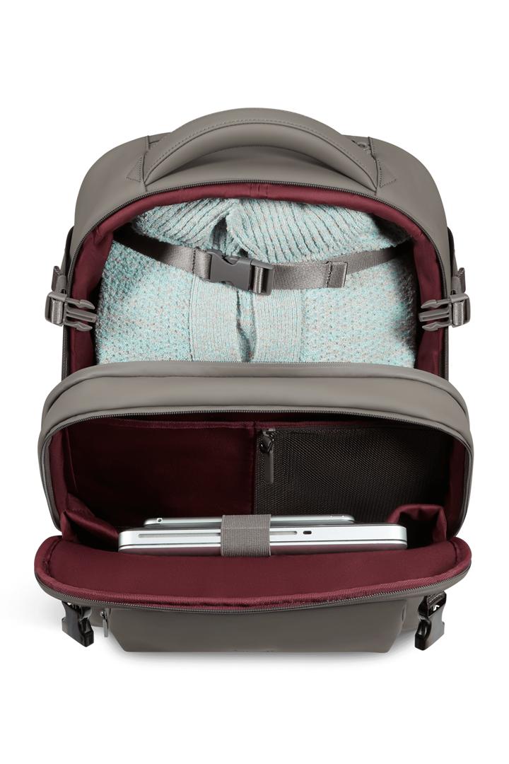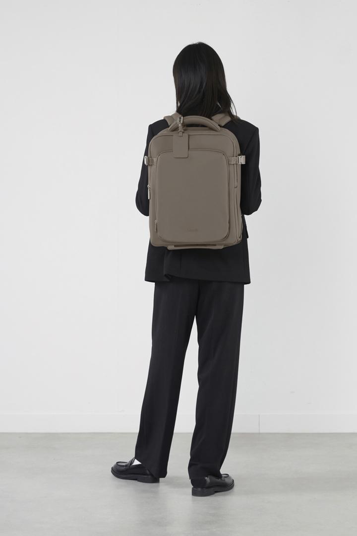 Lipault décline sa ligne Lost in Berlin dans une version pensée pour la mobilité urbaine et professionnelle. Ce sac à dos à roulettes mise avant tout sur une esthétique minimaliste. De plus, il utilise une matière polyuréthane et polyester à l’aspect gomme. Ce revêtement offre ainsi un toucher peau de pêche très agréable au quotidien. Par ailleurs, il assure une imperméabilité totale et une grande résistance aux rayures.