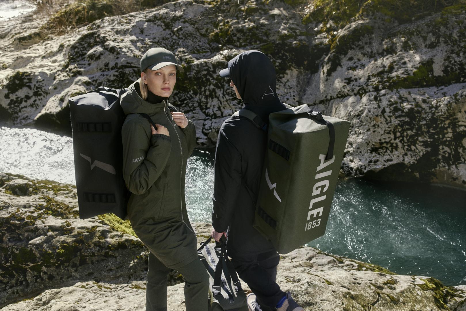 Pour l’avant-dernier jour, on s’adresse à ceux pour qui le mauvais temps n’est pas une excuse, mais une ambiance. Aigle, le maître incontesté du caoutchouc depuis 1853, applique son expertise de l’étanchéité à la bagagerie avec le bien nommé Travel Dry.