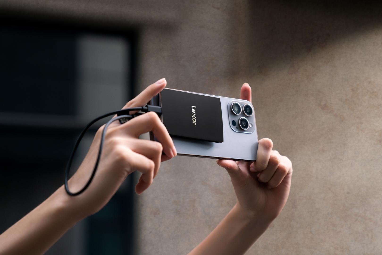 Le Lexar SL500 est un SSD portable d’une finesse incroyable de seulement 4,8 mm. Il se fixe magnétiquement au dos de votre smartphone pour une ergonomie parfaite. Ce kit est d’ailleurs pensé spécifiquement pour les utilisateurs d’iPhone 15 et 16 Pro. Ainsi, vous pouvez enregistrer vos vidéos ProRes directement sur ce support externe.