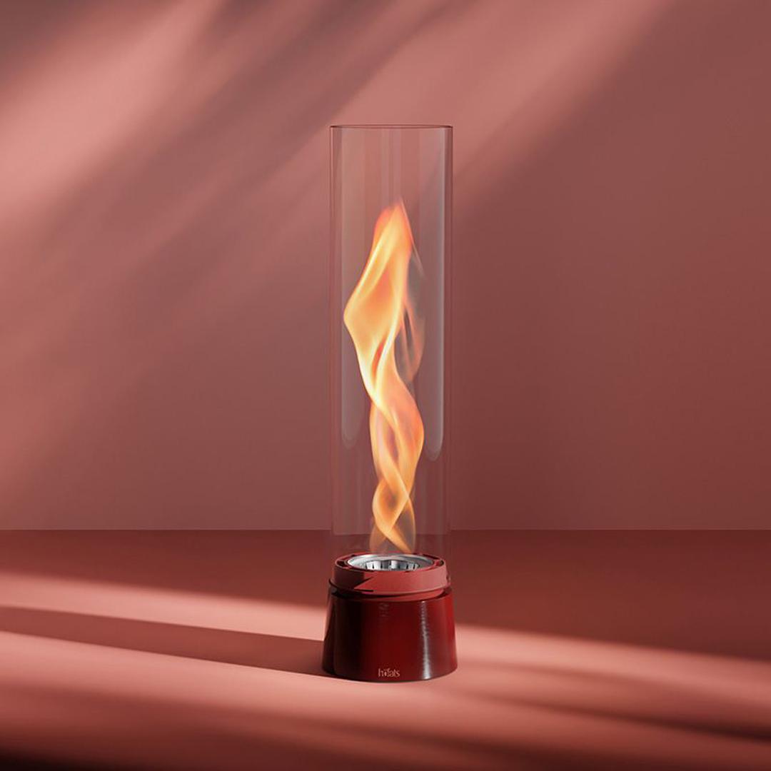 La marque allemande Höfats, spécialiste du feu design, renouvelle l’image du feu avec la gamme SPIN Air. Disponible en deux tailles (900 et 1200), ce feu de table crée un véritable tourbillon de flammes dans un cylindre en verre, grâce à une technologie de flux d’air rotatif. Ici, le design est épuré, toute la technique est dissimulée dans le pied, donnant l’impression que la flamme flotte comme une sculpture.