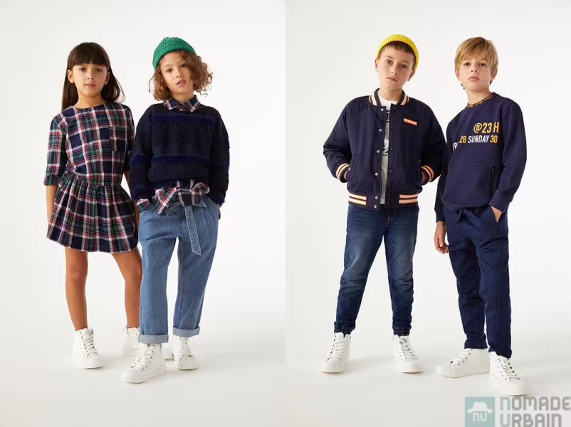 Pour les filles, laissez-les choisir entre des jupes et des salopettes en jean avec poches et des surpiqûres colorées. Elles peuvent craquer pour des pulls avec des détails en lurex et des imprimés pailletés. Ou alors, succomber aux robes et aux chemisiers en coton oversize, qui s’ornent aux motifs à carreaux. Des pulls au slogan girl power finalisent la liste.