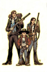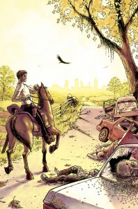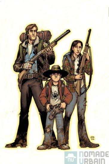 Si vous n’avez pas encore découvert cette bande dessinée (scénario : Robert Kirkman, dessinateurs : Tony Moore et Charlie Adlard , couleur : Cliff Rathburn), je vous la conseille vivement. Rarement la lutte de l’humanité contre l’adversité (ici une invasion Zombie) a donné naissance à un univers aussi réaliste. Et surtout, j’aime que le focus soit réalisé sur les humains – avec leur face obscure et lumineuse – et non les Zombies. Les morts-vivants ne sont que le catalyseur qui expose à nu les sentiments les plus beaux et les plus cruels.